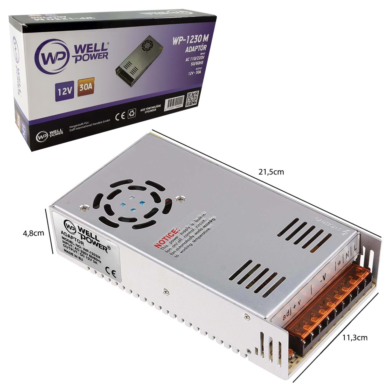 WELLPOWER WP-1230M Metal Kasa Adaptör Fanlı 12 Volt 30 Amper