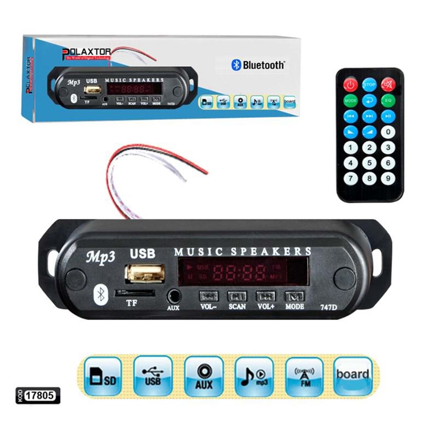 OTO TEYP ÇEVİRİCİ BORD KUTULU 12V BT/USB/SD/FM/AUX POLAXTOR