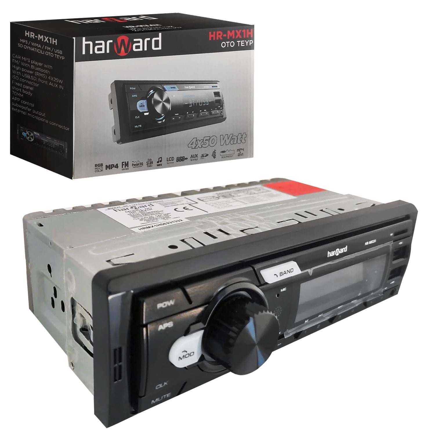 HARWARD HR-MX1H Oto Teyp 4X50 Watt Bluetooth Mobil Aplikasyon 2xUsb Sd Fm Aux