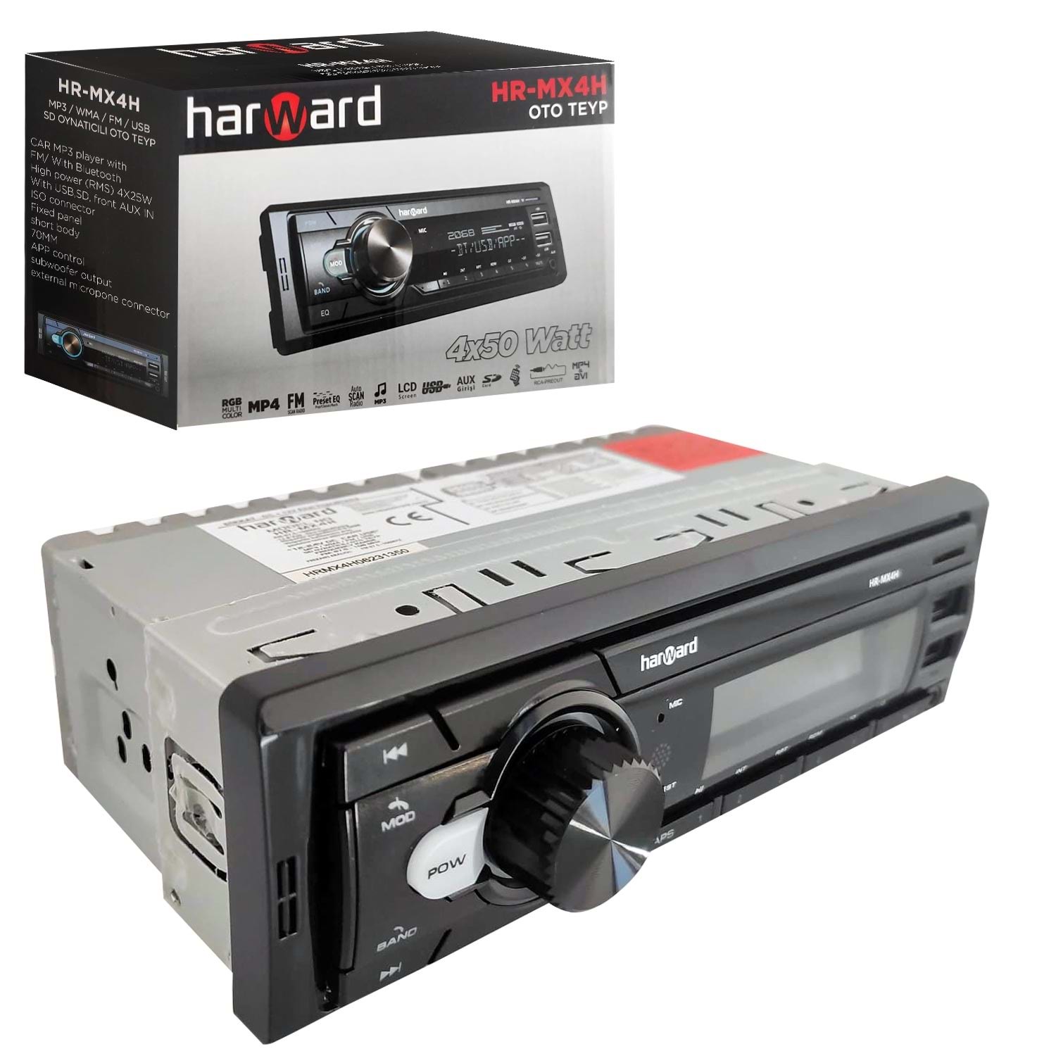 HARWARD HR-MX4H Oto Teyp 4X50 Watt Bluetooth Mobil Aplikasyon 2xUsb Sd Fm Aux