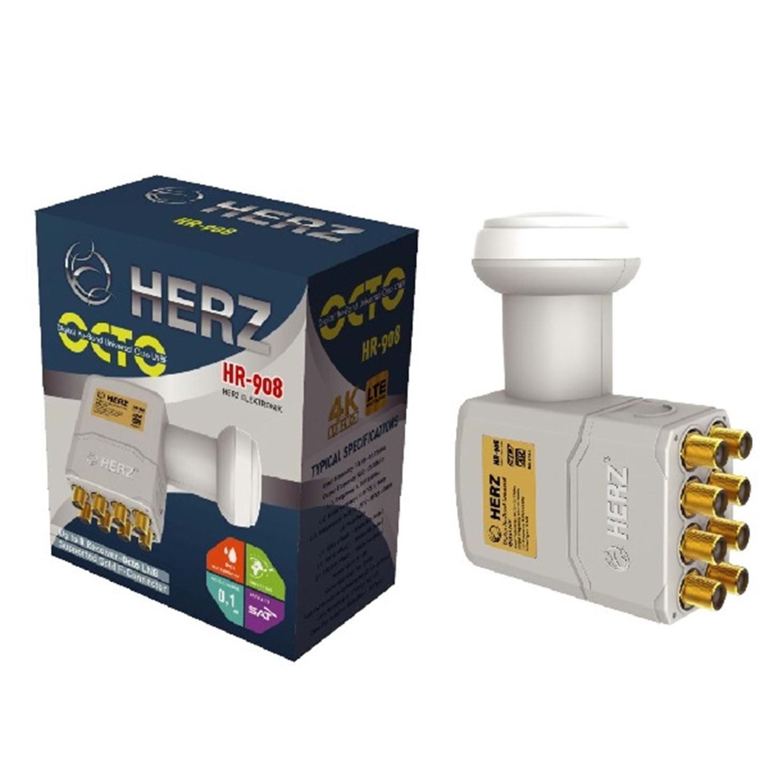 HERZ HR-908 SEKİZLİ LNB 0,1dB FULL HD 4K 3D UYUMLU