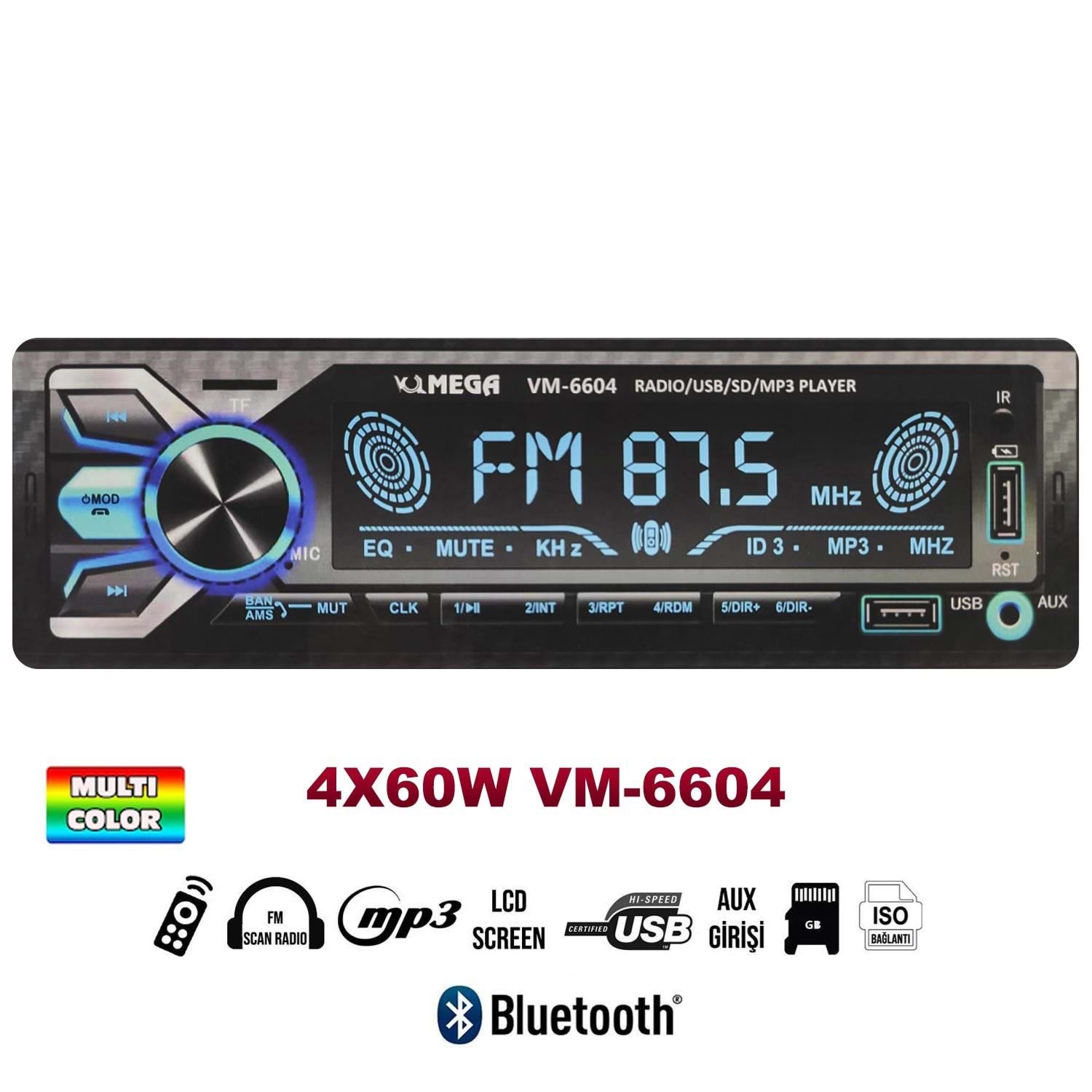 MEGA VM-6604 Oto Teyp 4X60 Watt Bluetooth Büyük Ekran